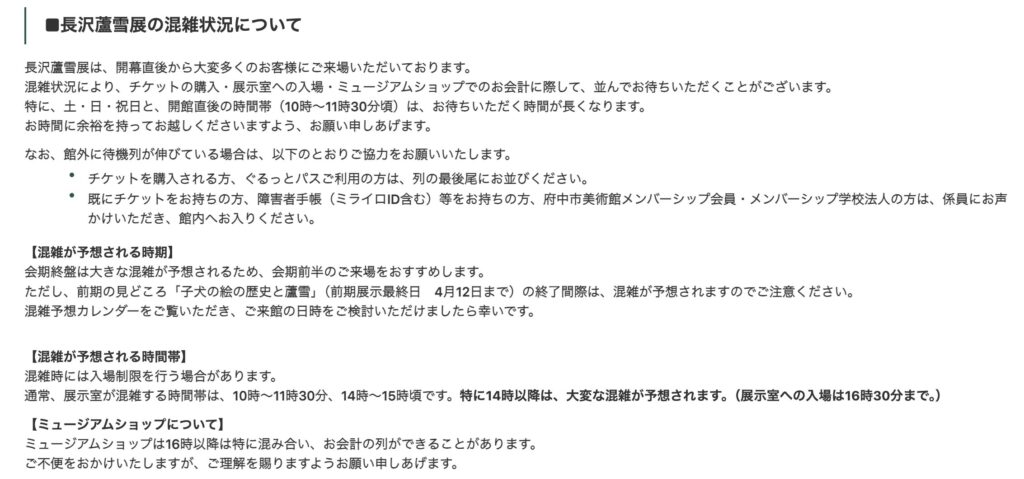 公式サイトで混雑予想が公開されているので、事前チェックするといいかもです。