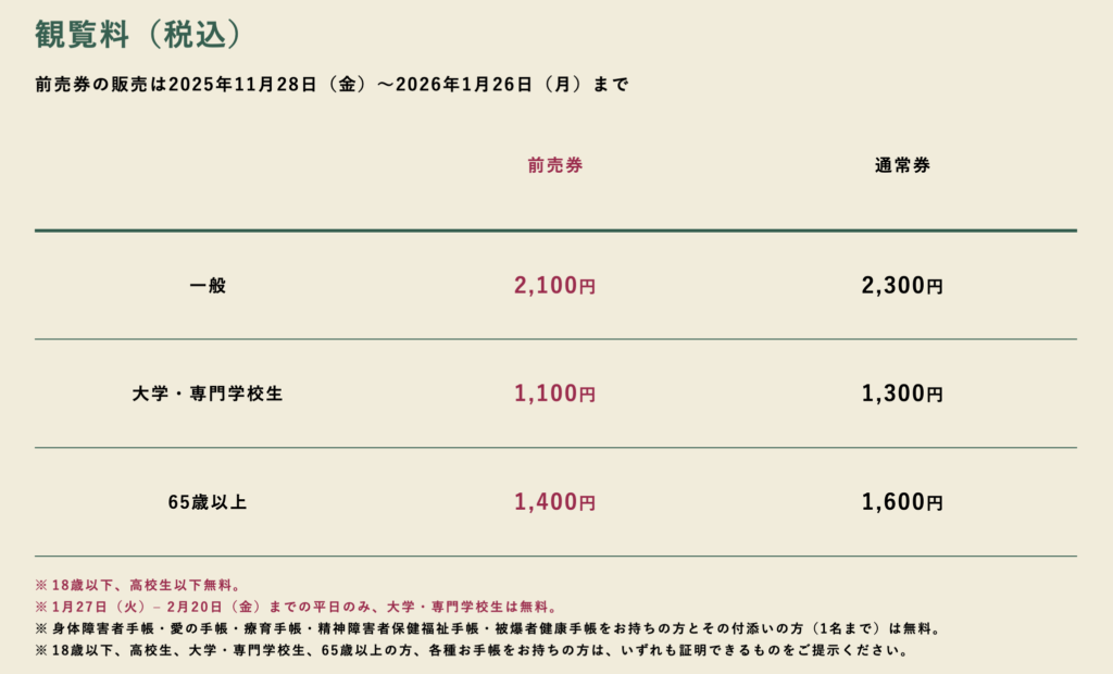 チケットは当日窓口or事前購入|フリー入場