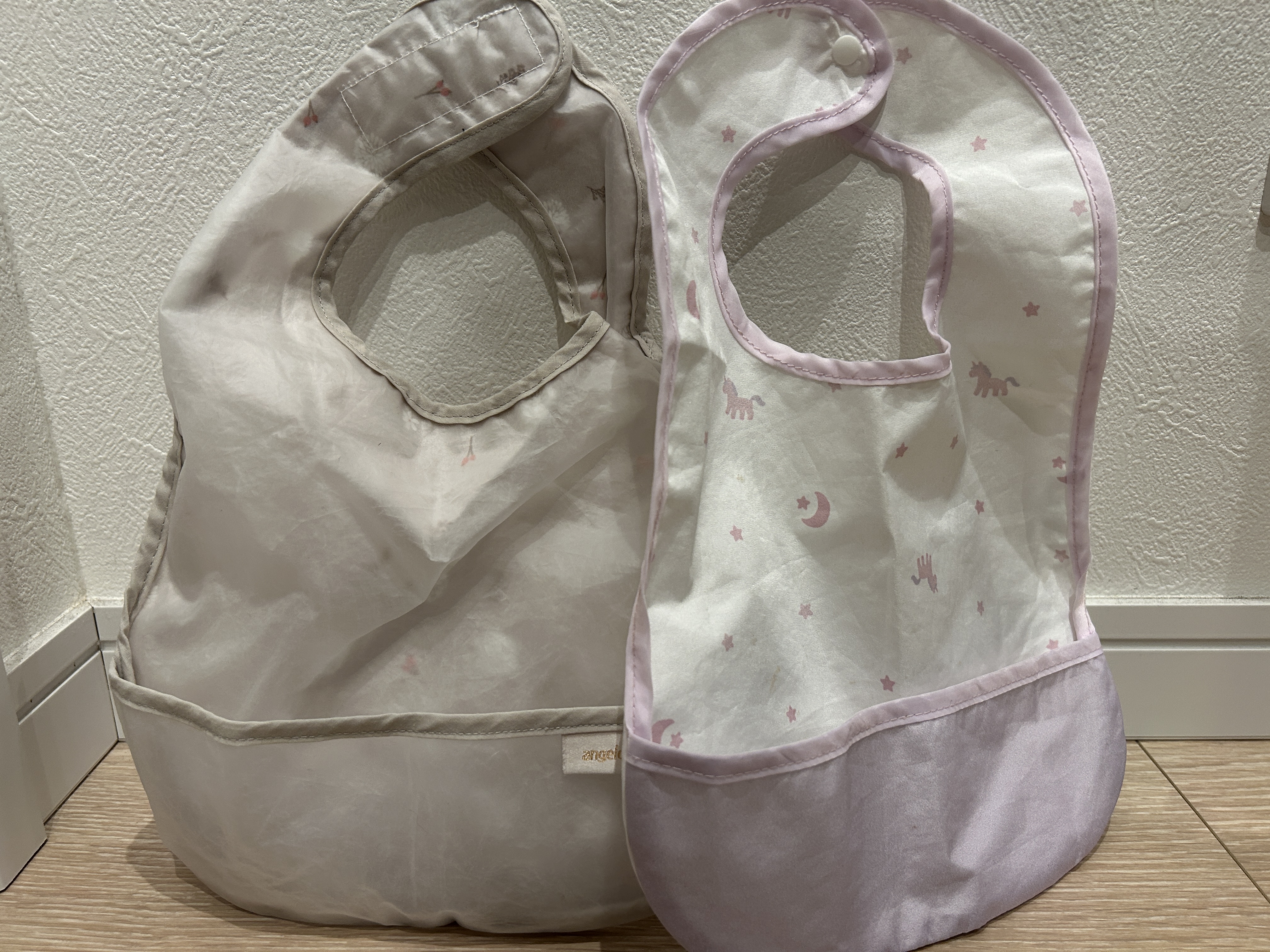 初期に使っていたアカチャンホンポのエプロンは夏ごろ(約5ヶ月後)にニオイが気になり始め、買い替えました。