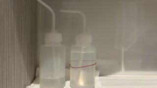 電動鼻水吸引器「メルシーポット」の管理について、洗剤や消毒液をスポイトボトルに入れておく方法をご紹介!洗剤をキッチンから持ってくることがなくなり、手間が減った・市販のエタノール消毒液のボトルほど場所を取らないので、洗面所で邪魔にもならない