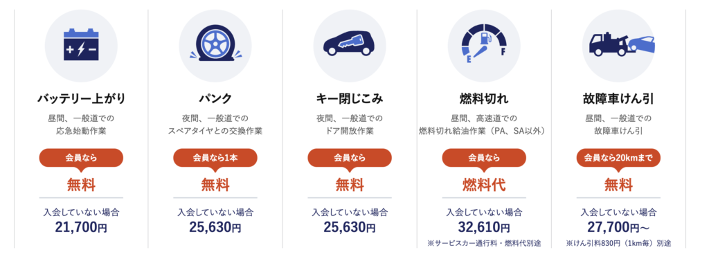 任意保険のロードサービスにも似たメニューがありますが、